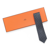 in Twill di seta grigio scuro, la lettera H e il disegno di un cavallino a dondolo si ripetono all'infinito sulla superficie.