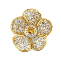 in metallo dorato, cristalli trasparenti montati a pavé e cristalli ambra.