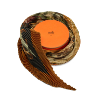 in smalto multicolore finitura placcato oro. Riprende il disegno della collezione in seta dell’artista Françoise Faconnet del 1963.