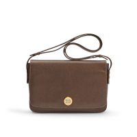 in cinghiale fango, interno in tessuto scamosciato marrone. Tracolla regolabile, chiusura con patta fermata da magnete. Hardware in metallo dorato e argentato.