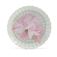 in porcellana di Limoges bianca con disegno di peonia. Bordo zigrinato.