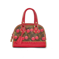 in edizione limitata, disegnata dall'artista Takashi Murakami. In tela Monogram "Cherries" con dettagli in Varano rosso e vacchetta. Interno in tessuto scamosciato rosso. Doppio manico in Varano rosso. Chiusura con zip fermata da lucchetto. Completa di clochette e set