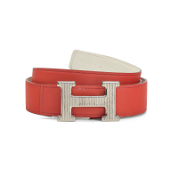 si tratta della prima fibbia intercambiabile disegnata dalla stilista Catherine de Károlyi nel 1967. Cintura reversibile in pelle Epson e Swift salmone e bianca.