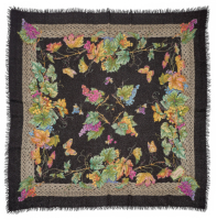 in lana, con disegno di tralci d'uva, api e farfalle su fondo nero.