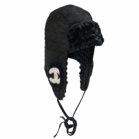 in montone logato nero con dettagli CC bianchi sui paraorecchi.