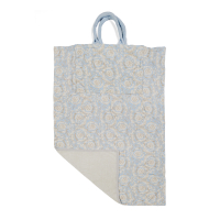 in spugna di cotone con logo frontale. Può essere portato a mano come borsa o aperto come asciugamano.