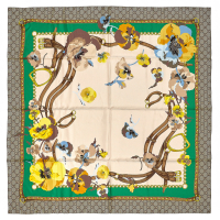 in seta, con disegni di viola del pensiero e motivi iconici della Maison.