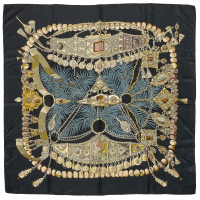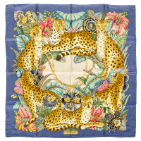 in seta multicolore con disegno di Ghepardi su sfondo tropicale.
