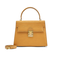 in pelle Epi senape, interno in tessuto logato bronzo. Manico e tracolla amovibile in pelle, chiusura con patta logata fermata a scatto. Hardware in metallo dorato.