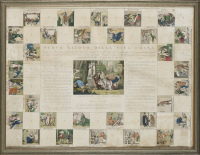 [Gioco di percorso]. Nuovo giuoco della vita umana (545 x 710 mm). Incisione in rame di Claudio Sala nella stampa milanese del 1825 circa con coloritura coeva (difetti), entro cornice. Ciompi & Seville 2438. Nel lotto anche Le nouveau jeu de la vie humaine, acquaforte leggi tutto