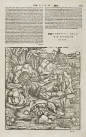 [Illustrati]. L'Opera Virgiliana cum decem commentis di Virgilio nell'edizione lionese di Giovanni Crespini del 1529 con frontespizio stampato in rosso e nero entro cornice figurata con numerose figure xilografiche a metà pagina nel testo, copiate dall'edizione del leggi tutto
