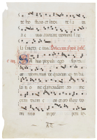 [Manoscritti miniati]. Lotto composto da 11 fogli di un antifonario miniato su pergamena, XVI secolo con pentagrammi musicali, e numerose iniziali rubricate in rosso e blu.