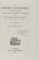 [Pellico]. Lotto che contiene un esemplare con barbe de Il seminario ecclesiastico o gli otto giorni a Santo Eusebio in Roma, opera del dottore Agostino Theiner scritta in tedesco e recata in italiano da Giacomo Mazio, stampato a Roma nel Collegio Urbano nel 1834, leggi tutto