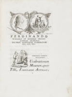 In 4° (249 x 180 mm); [12], 384 pagine. Medaglione in rame al frontespizio con effigie di Maria Teresa, 2 testatine, 1 iniziale e 17 finalini incisi su