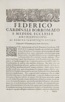 [Milano]. Esemplare marginoso e fresco della prima edizione dell'Acta Ecclesiae Mediolanensis. A Carolo Cardinali S. Praxedis archiepiscopo condita, Federici Carol. Borromaei archiepiscopi iussu undique diligentius collecta, & edita, uscita dai torchi di Pacifico da leggi tutto
