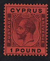 1924 - Giorgio I 1 £. violetto e nero su carta rossa II emissione