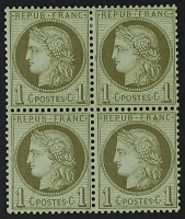 1870 - Emissione di Bordeaux 30 c. bruno blocco di quattro - Molto bello - Cert. Behr