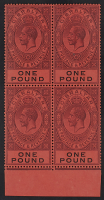 1912 - Giorgio V 1 £. violetto e nero su carta rossa blocco di quattro bordo di foglio inferiore