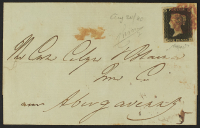 1840 - Prima emissione 1 p. nero su lettera del 20 agosto da Liverpool - Cert. Caffaz