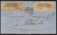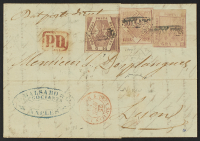 1859/60 - Undici lettere dirette in Francia con pregevoli affrancature (fino al 20 gr.) comprendenti anche falsi d'epoca - Insieme da esaminare ma di grandissimo interesse - Cinque certificati