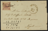 1860 - Castrovillari - "Svolazzo" annullatore di 2 gr. III tavola, cerchio in rosso a lato, su lettera del 29 luglio per Napoli - Prima data d'uso nota degli annullamenti a "svolazzo" - Cert. Chiavarello - Firme A.D. e Raybaudi
