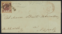 Insieme di frammenti e documenti postali affrancati con esemplari del Regno di Napoli e delle Province Napoletane in diverse combinazioni miste - Da esaminare ma di grande rarità - Cinque certificati