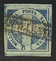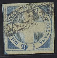 1860 - "Croce" 1/2 t. azzurro - Cert. Colla