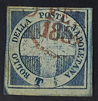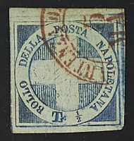 1860 - "Croce" 1/2 t. azzurro annullato in rosso - Riparato - Cert. Diena