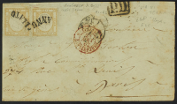 1862 - Torre del Greco - "Svolazzo" annullatore di 10 gr. arancio due esemplari su lettera dell'agosto per Parigi - Molto rara - Da esaminare