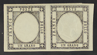 1861 - 1 gr. nero coppia orizzontale con esemplare senza effigie - Cert. Diena