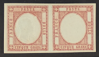 1861 - 5 gr. rosa coppia orizzontale con un esemplare senza effigie - Cert. Diena