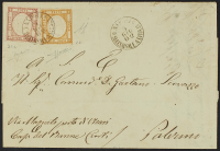 1861 - 5 gr. vermiglio + 10 gr. arancio su lettera del 5 giugno 1862 da Napoli per Palermo - Cert. Sorani - Firme A.D. e Raybaudi