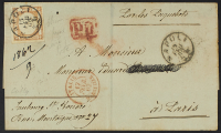 1861 - 10 gr. arancio II tipo effigie C su lettera del 15 febbraio 1862 da Napoli per Parigi - Cert. Colla - Firma E. Diena