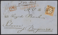 1861 - 10 gr. arancio II tipo effigie C su assicurata del 3 aprile 1862 da Napoli per Sulmona - Cert. Diena - Firme Raybaudi e Sorani