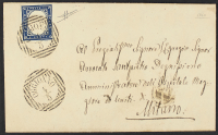 1861 - Tirano doppio cerchio con rosetta annullatore di Sardegna IV emissione 20 c. azzurro su lettera del 18 febbraio per Milano - Da esaminare - Cert. Colla