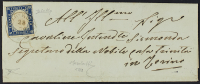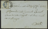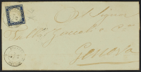 1863 - 15 c. azzurro tipo Sardegna su lettera del 28 febbraio 1863 diretta a Torino - Francobollo annullato con bollo a doppio cerchio "con rosetta" di Polonghera - Cert. Bottacchi