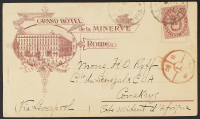 1890 - Cartolina postale commerciale del 31 dicembre da Roma per Conakry (Guiana Francese) affrancata con Umberto I emissione 10 c. carminio - Rara destinazione