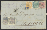 1872 - India - Lettera del 25 giugno fa Calcutta per Genova con affrancatura "quadricolore" di 2 s. + 4 a. + 6 s. + o p. due esemplari - Da esaminare