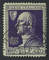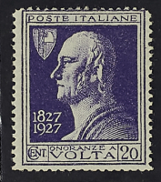 1927 - Volta Violetto 20 c. usato in Italia con annullo di favore - Raro - Cert. Cilio