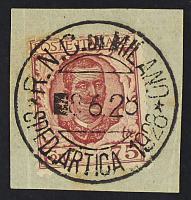 1928 - R.N.C. di Milano - Sped. Artica 1928 - Cerchio dissimulatore di Floreale 75 c. su piccolo frammento