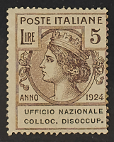 1924 - Cinque serie - Unito il 25 c. Vigilanza Obbligo Scolastico