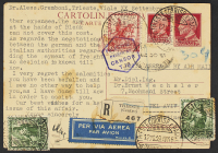 1939 - Cartolina postale 75 c. con affrancatura complementare del 12 ottobre raccomandata via aerea per Tel Aviv (Palestina) - Documento non comune
