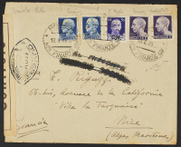1945 - Affrancatura mista Imperiale / Posta Militare su busta censurata da Roma (annullo M.ro Finanze) per Nizza (Francia) - Per specialista - Firma Raybaudi