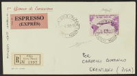 1961 - Gronchi Rosa 205 L. blocco di quattro ricoperto dal grigio su raccomandata aerea con timbro di arrivo del 7 aprile da Varazze per il Perù - Rara - Da esaminare - Cert. Savarese