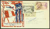 1961 - Gronchi Rosa 205 L. - L'aerogramma con due esemplari ricoperti e timbro di arrivo a Lima - Uniti altri due aerogrammi ciascuno affrancato con due valori da 170 L. e 185 L.