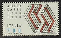 1990 - Saffi 700 L. coppia orizzontale bordo di foglio a sinistra con la stampa del verde molto spostata a destra, la stampa del nero spostata in alto e senza la stampa del colore e dell'indicazione del valore - Molto rara (dieci esemplari noti)