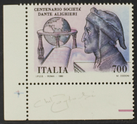 1990 - 700 L. "Dante violetto" due esemplari di cui uno angolo di foglio inferiore sinistro - Cert. Bolaffi e Raybaudi