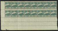 1903 - Veduta 5 c. blocco orizzontale di sedici esemplari angolo di foglio inferiore sinistro con tripla dentellatura alla base