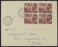 1951 - Concilio di Calcedonia 25 L. blocco di quattro non dentellato verticalmente al centro bordo di foglio inferiore su busta del 17 dicembre per Roma - Rara