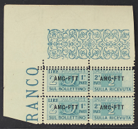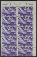1954 - Nuova soprastampa 50 L. blocco di dieci esemplari angolo di foglio inferire destro